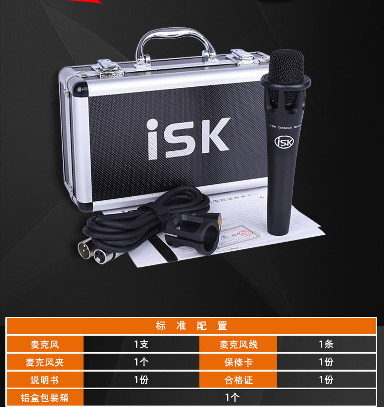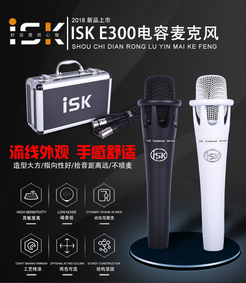 ISK E300电容麦克风手机电脑K歌录音喊麦话筒直播设备全声卡套装