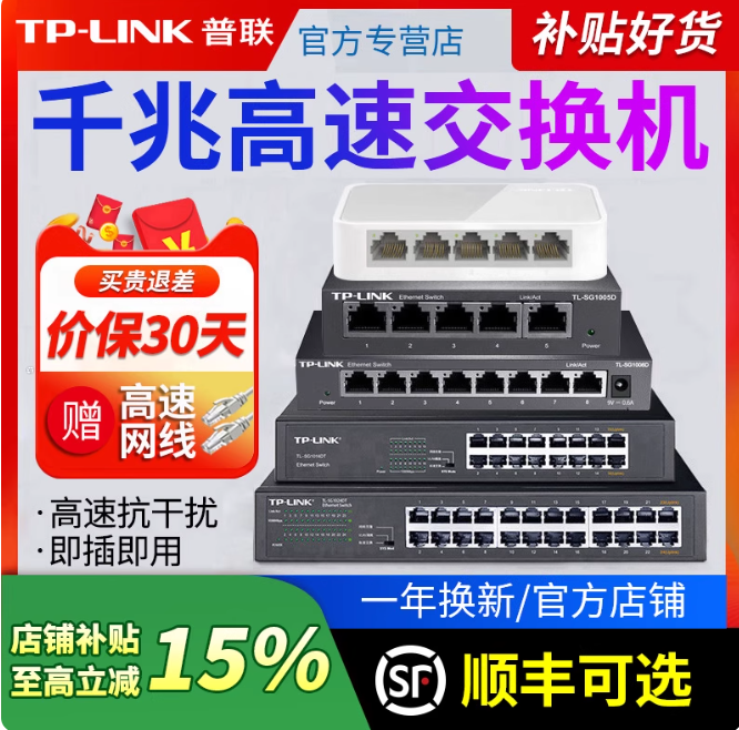 普联TP-LINK5口千兆交换机8口16口百兆网线宽带五八口分线器 tplink监控家用路由器供电分流集线器