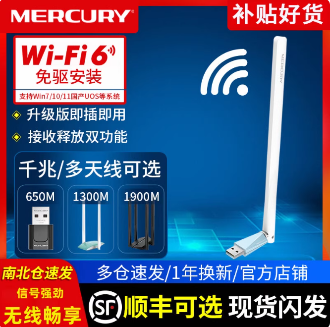 水星免驱usb无线网卡台式机电脑主机笔记本天线发射随身wifi6接收器以太网千兆路由器家用网络信号