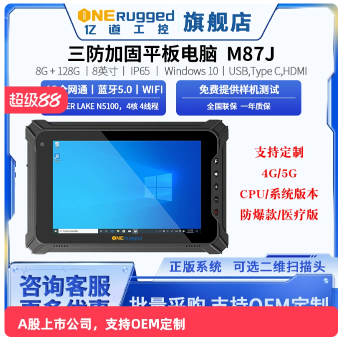 亿道M87J/M17J加固三防工业平板电脑防爆8/10.1英寸屏幕Windows叉车工控一体机防摔IP65手持二维扫码终端平板